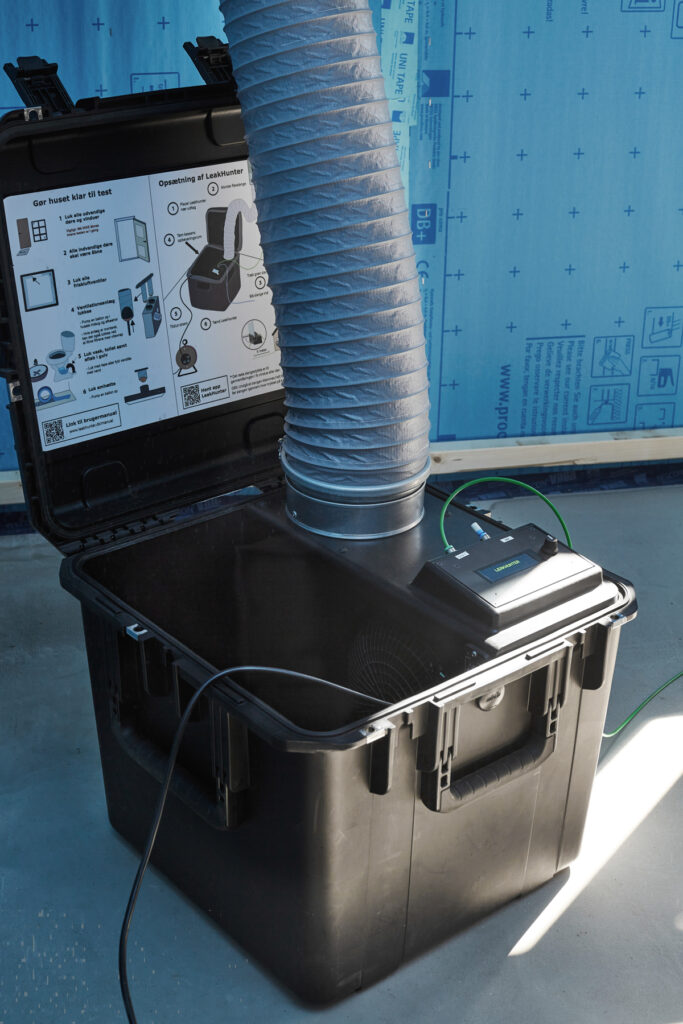 Bygningen lukkes af for at foretage en tryktest. Sæt LeakHunter op og du er klar!
